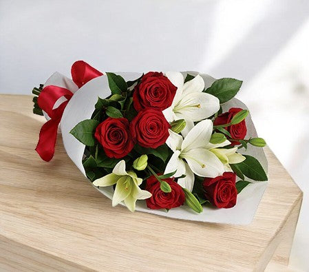 Timeless Elegance: Red Roses and White Lilies Bouquet